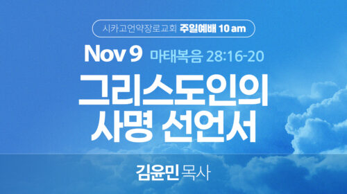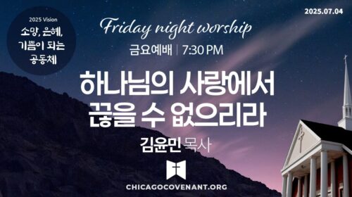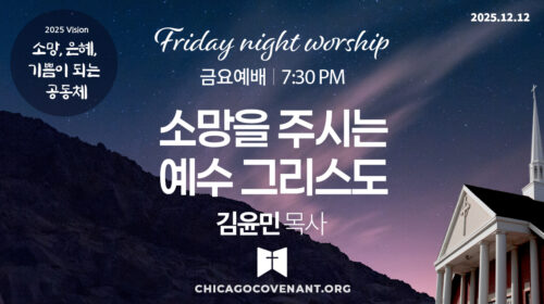 시카고 언약 장로교회에 오신 모든 분들을 주님의 이름으로 환영합니다.